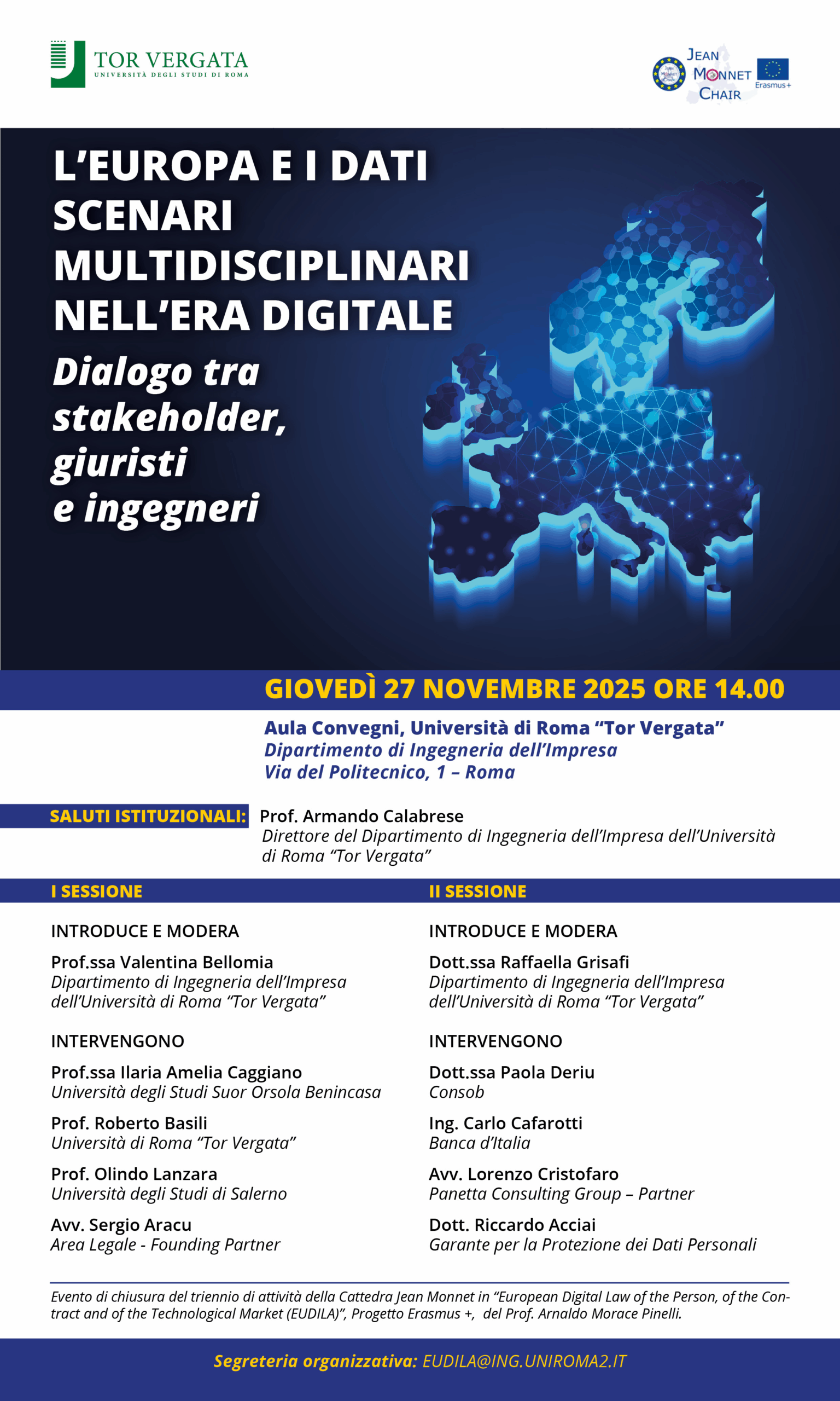 Evento di chiusura del triennio di attività della CattedraJean Monnet in “European Digital Law of the Person, of the Contract of the Technological Market (EUDILA)”, Progetto Erasmus +, del Prof. Arnaldo Morace Pinelli.ù